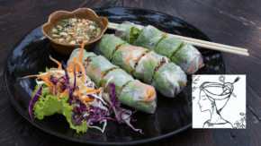 Karo-Tina Aldente: Grüner Spargel in Reispapier mit Erdnusssoße