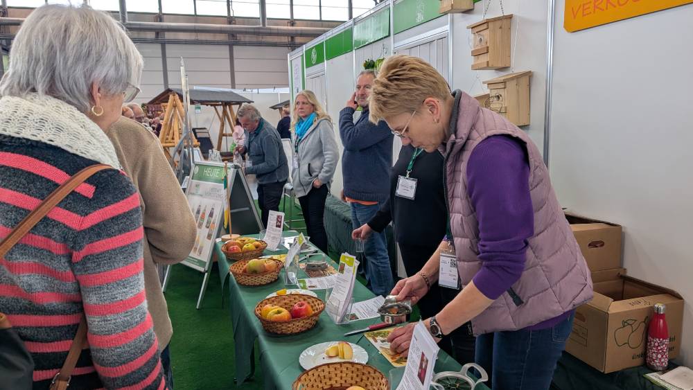 In der Mitte der Halle wartete der Stadtverband Leipzig der Kleingärtner e.V. auf Gartenfreundinnen und Gartenfreunde und zeigte auf einer umfangreichen Fläche alles, was das Gartenherz begehrte. Neben der Fachberatung, die Kleingärtnernden Hilfestellungen gab, konnten die Besuchenden auch ihre Gartenerde chemisch untersuchen lassen oder die neuesten Apfelsorten aus dem Kleingarten verkosten. Ausstellungsstücke rund um das Thema Mulchen, Gartenbepflanzung und das Gärtnern im eigenen Beet ließen sich ebenfalls bestaunen. Ein besonderes Angebot gab es auf der Bühne, auf der zahlreiche Expertinnen und Experten ihr Wissen mit den Gästen teilten interessante Fachvorträge. Zum Beispiel informierte die aus dem Fernsehen bekannte Gartenbaumeisterin Helma Bartholomay über alte Obst- und Gemüsesorten.