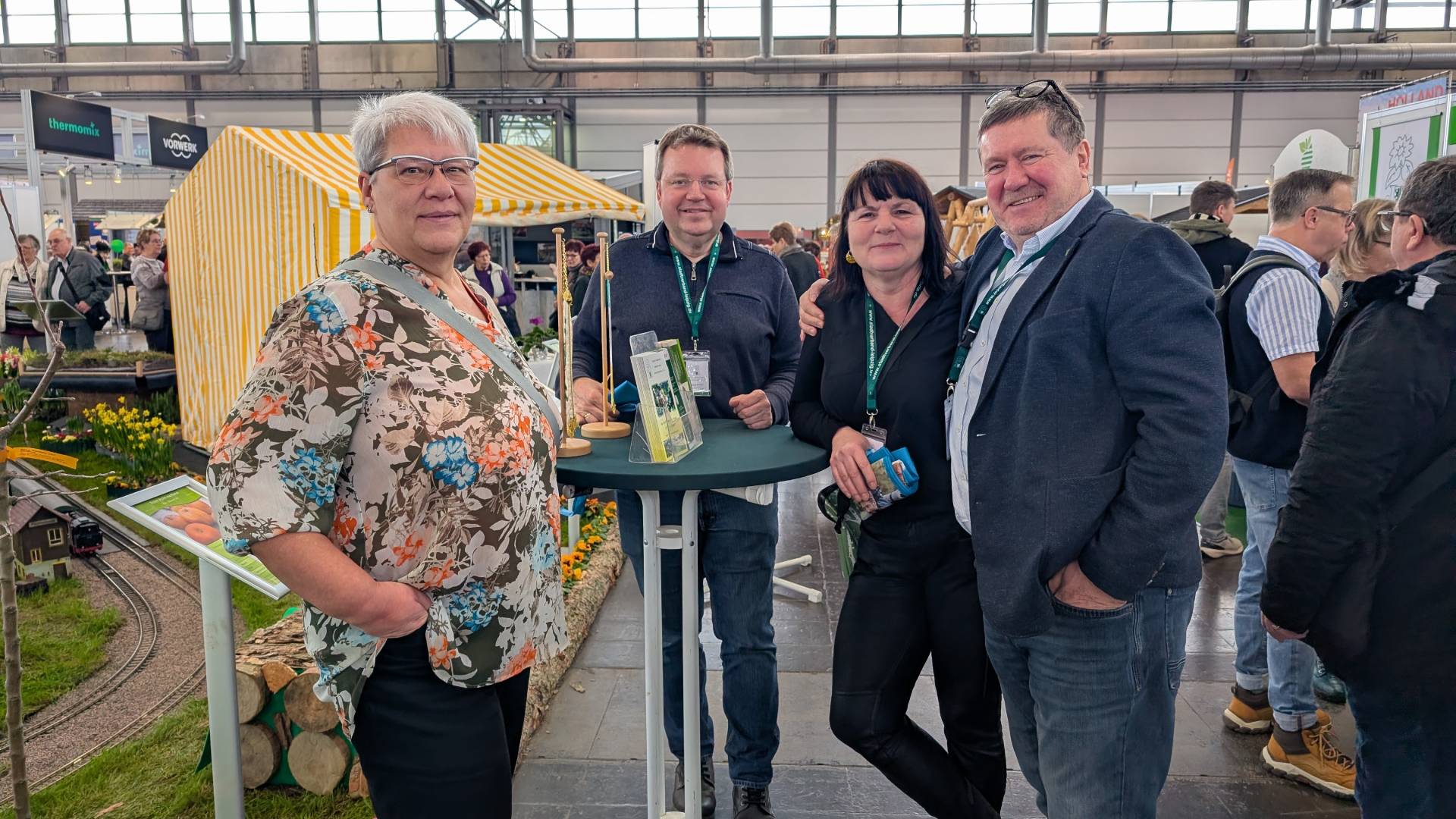 Die Haus-Garten-Freizeit, eine der größten Publikumsmessen Deutschlands, ist zu Ende gegangen und hatte in insgesamt drei Hallen zahlreiche Tipps und Tricks, Ideen und Angebote für Klein- und Hobbygärtner im Gepäck. Ebenfalls vertreten war der Stadtverband Leipzig der Kleingärtner e.V., der mit vielfältigen Angeboten Groß und Klein begeisterte (Foto: Iris Uhlig, Heiko Dittrich und Suzanne Krauß vom Stadtverband Chemnitz mit Rommy Müller vom Stadtverband Leipzig am Messestand der Leipziger Kleingärtner, v.l.n.r.)