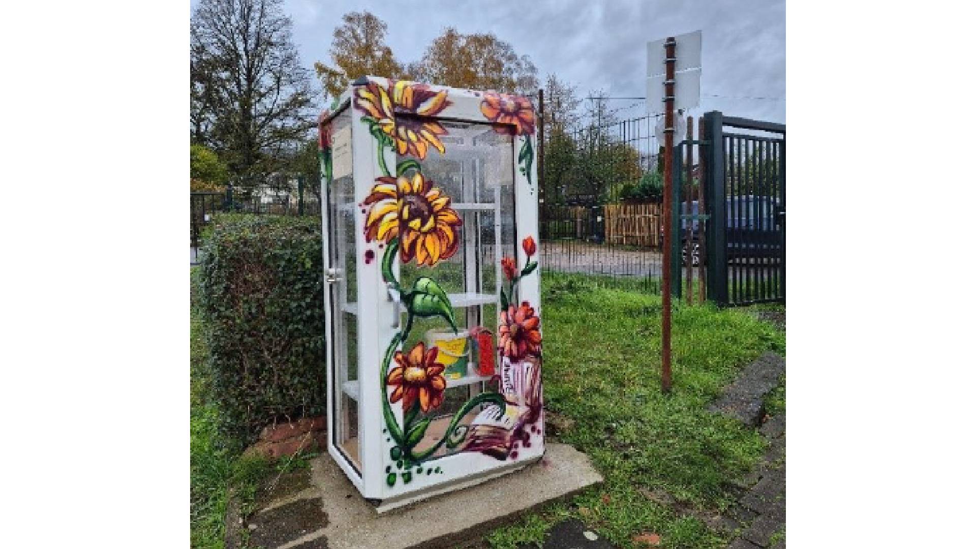 Dank der kreativen Unterstützung von Jugendlichen aus dem Alternativen Jugendzentrum Chemnitz erstrahlt die Kabine nun in floralem Design. Sie lädt Jung und Alt zum Tauschen ein, gibt Vereinsmitgliedern die Möglichkeit, neue Pflanzensorten auszuprobieren und hält in Büchern so manchen Gartentipp aus Großmutters Zeiten bereit. Ganz nebenbei schont der Tauschschrank auch noch den Geldbeutel.