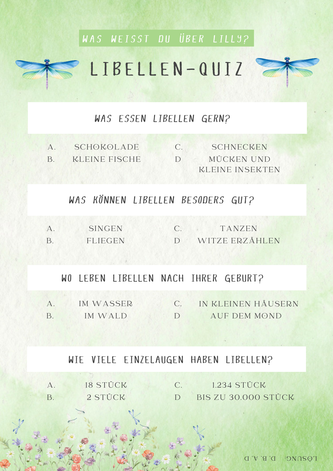Libellen-Steckbrief, Rätsel und mehr